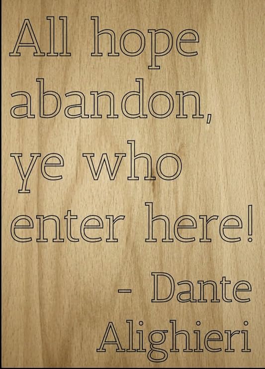 Amazon Com Mundus Souvenirs All Hope Abandon Ye Who Enter Here Quote By Dante Alighieri Laser Engraved On Wooden Plaque Size 8 X10 Home Kitchen